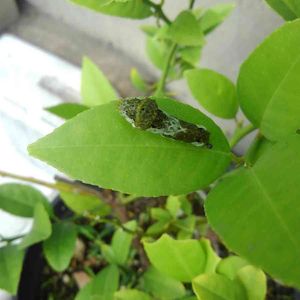鉢植えのレモンにアオスジアゲハの幼虫がいる 放っておくと丸坊主にされるよね どうするかな?