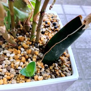小さいの植え替え中🌱 相変わらず真ん中に植えられない…💦。 🍀見た感じ上部はさほど育ってなさげなのに、根っこはバキバキだったりするサンスベリアです🌵 根は良い奴なんですよ~。 という魔法の言葉をふと思い出した🎵