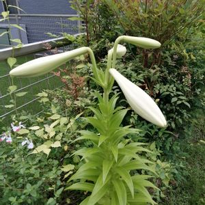 今日のお花 ゆり わが家の庭ではまだ咲いてない😌 今日は雨 窓辺のモンステラは綺麗な幼葉が開き、 謎サボテンは開花💖
