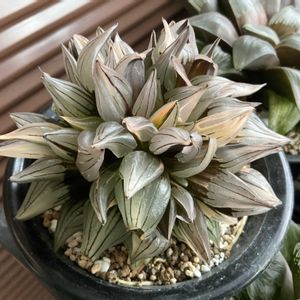 こんにちは😃 午後から天気下り坂予報 だったので3枚目の亀と近所の公園に散歩した後 少し鉢整理しました。 ハオルチアはあまり持っていませんが、このミュータントはとても丈夫で窓が綺麗なお気に入り 見てると涼しくなります。