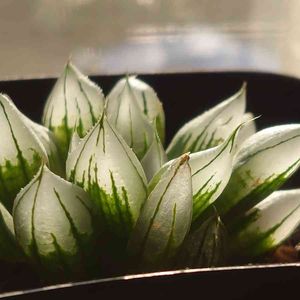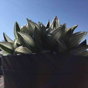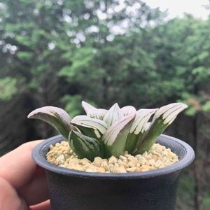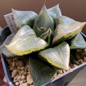 ハオルチア・アトロフスカ「ミュータント」。 ISI型アトロフスカの枝変わり個体。 メリクロン苗の中から生まれたという突然変異株で、もはや元の姿が分からないくらい原型をとどめていない面白い品種です。 葉表面だけでなく葉先全部がクリアな窓になり、葉数が増えるとクリスタルの集合体のようなビジュアルになる映え系ハオですね。 何となくスペースゴジラの飛行形態に似ているような気がします。宇宙のエネルギーを吸収してる感じがしますね〜 もしくは葉先だけが膨らんだ様な形をしているので見方によっては亀の頭のようにも見えるかもしれません。 あ、でもアレですね。亀の頭って言っちゃうと、なんかちょっとアレですよね。 このようなミュータントと呼ばれる変異は他の幾つかの種でも知られておりますが非常に稀有な変異でして、このレアなタイプの変異が大好きなアトロフスカから見出されたということにつきましては心よりの感謝と御喜びを申し上げると共に皆様の御多幸と益々の御健勝をお祈りさせて頂きたく存じます。
