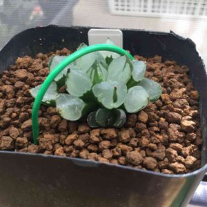 ハオルチア、ミュータント。何となく気難しい種類というイメージがあったんだけど、今のところ無事。子吹きしてきたような様子もあるのでこれからが楽しみ。もうちょっと透明度が出るといいんだけど。