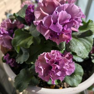 今日のお花はパンジーということで、ローブ ドゥ アントワネット ロココさんの登場👸 1つの株から、こんなに多彩な色合いを見せてくれます♪ 咲き始めは濃い紫 そしてだんだんとやわらかな花色へと変化して、オレンジやブラウンがかった色も顔を出してきます たっぷりとしたフリルを縁取る、白の繊細なラインも大好きです✨️