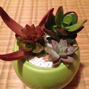 ホーローの鍋に多肉を寄せ植えしてみました。