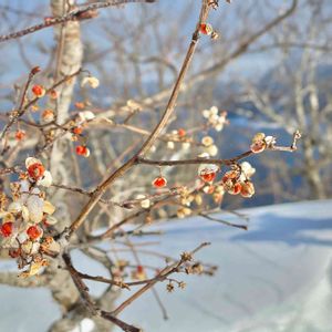 昨日行った摩周湖スノーハイク。 展望台からは見れない景色。 ツルウメモドキが野鳥にも食べられずフリーズドライになってました❄️