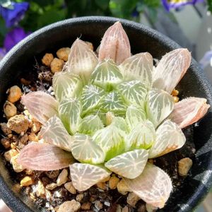 斑入り?ハオルチア、 株が4つ入ってるんですが、これって分けて植えた方がいいのかな。 皆さんはどうされますか? リメ鉢はなつ子さん作です☺️