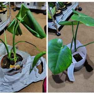昨日投稿した瀕死のDAISO500円モンステラさん。 一晩薄めのメネデール水に漬けておいた結果、見事復活! 我が家のモンステラ2号としてこれからよろしくね🎉 2本あるので植え替えは5号鉢かな〜?と迷い中。