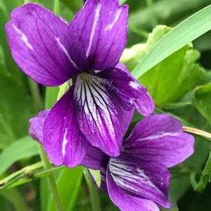 昨日の河原の公園では、 もう一種のスミレが生えてました。 こちらも群生していました🤗 うつくしい紫色でした。 何スミレかはわかりません😅