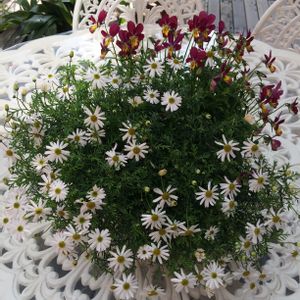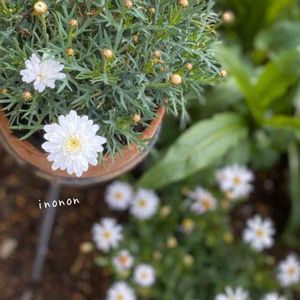 ブラキカムが何年も咲いてくれて嬉しい💕 白は500円セットの中に入ってたから、 実質80円❣️ よく咲いてくれるかわい子ちゃんです。 紫ちゃん、植え替えしたら花が大きく なったかな☺️
