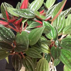 おはようございます٩(*´꒳`*)۶ ペペロミア ロッソ❤️💚 先日に続き、ホームセンターで 珍しい植物を見かけました 観葉植物コーナーにあり 表が緑っぽく💚 裏は赤っぽい❤️葉っぱです😆
