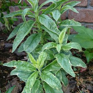 宿根ベロニカ シャーロッテ 植えるところが決まるまで 鉢(缶)で過ごしてもらいますー 葉っぱも斑が入ってかわいい