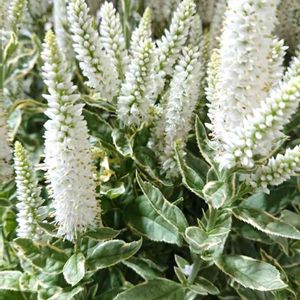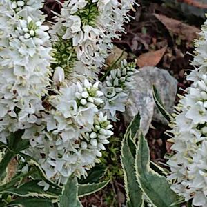 葉っぱも斑入りで お花も真っ白で可愛いこのお花・・・ 何ていう名前でしょうか?? 追記\(^o^)/ みんみんさんに、 「ベロニカシャーロッテ」 と教えて頂きました!! みんみんさん、ありがとうございました┏○💕💕