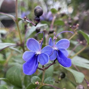 こんばんは🌇 庭にブルーウイングがまた咲いていました💙 まだ蕾が沢山ある楽しみ(๑˃̵ᴗ˂̵)💕 だるまぎくも今年も咲いて来ました🎶💕 主人の月命日で切り花の菊沢山買ってお墓と仏壇に😊👍 ナンキンハゼも買ってしまった🤍 床の間に飾ってみた🤣 あまり見ない実で嬉しいです😊