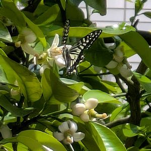内科ついでの 花散歩で✨ 🤍💚🦋⚪🩵🩵🏢🩵⚪⚪♪ 気になっていた… 実のその後を見てきました⚪💕 1️⃣今日のお花✨ タチバナ のお花がわからないので… 同じような柑橘系のお花で~! 撮影 5/1 2️⃣ナンキンハゼの実 と青空 白い実がお花のよう! 3️⃣穏やかな昼下がり の空と川面 4️⃣センダンの実 5️⃣ナンキンハゼの実と 鳥はオナガかな…? 今日も 笑顔😄で 過ごせますように💐 北海道・三陸沖地震 こちらも揺れました🫨 被害が出ませんように🙏