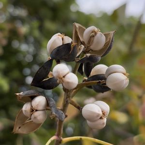 ナンキンハゼ トウダイグサ科ナンキンハゼ属 落葉高木 中国原産 別名はトウハゼ、カンテラギ 和名の由来は「中国のハゼノキ」の意で、中国原産から「南京」、ハゼは紅葉が埴輪の色に似ているので、埴輪を作る工人である土師(はにし)が転訛したものである。 本州、中国、九州で見られる。 関東地方以南では、街路公園、庭に植えられているものが見られる。 樹高は8〜15m 葉は丸みを帯びた菱形、三角状広卵形で、先端は尾状で尖る。 葉には油分が多く、葉裏が白っぽく水を弾く。 秋には色鮮やかに紅葉し、赤色や黄色、紫色などが混じり美しい。また、1枚の葉でも複数の色が見られることが多い。 花期6〜7月 雌雄同株 花色は黄緑色で、雄花は6〜18cmの総状花序に多数つき、その葉腋に1〜3個の雌花をつける。 果実は秋に、少し三角がかった球形の蒴果を黒熟させ、裂開して3室ある果皮が取れて3個の白い種子を出す。 ①〜④ 11/23撮影 ⑤ 12/4撮影 🏷️木曜日は木 に参加させていただきます。