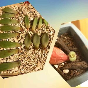 多肉の保育園! シュウレイとブロンズ姫とカゲツのお子ちゃま達です! みんなすくすく大きくなって来てます! かわいい〜〜‼️ でも、月兎耳の実験はなんだか失敗しそうな予感です>< やっぱり元気な葉っぱの方が良かったかなぁ…😢 もけもけの子達は増やすの難しいですね💦