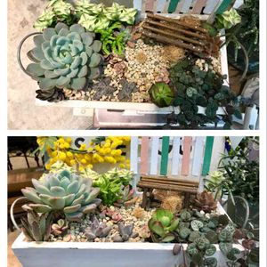 昨日お迎えした子達を早速…! 小さくしか写せなかった寄せ植えを真ん中にしてみました。このピンクのは桜吹雪…だと思うけど、葉っぱがしわしわなのはこれからなんとかなるかなぁ〜