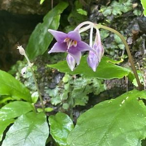 ①②③④ イワタバコ 岩煙草 イワタバコ科イワタバコ属 福島県以西自生 陽の当たらない湿った岩や崖に生える 物部村別府峡 8/18 こんにちは 7月下旬に香北町猪野々に行きましたがまだ蕾でした💜 今回2〜3日前に物部村別府峡に行った方から、群生しているとの事、最初からワクワク💜 花が小さいので全体をうつそうとしましたら何を写したのか全然分かりません😅💜💚パスでしたよ💜 前日に雨が少し降ったのかな、足元は悪かったですが、しっとりと濡れたイワタバコはどれも美人さん揃いでしたよ💜