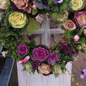 ハボタンのリース 美容院のエントランス用にご注文いただきました。40㎝リースにハボタンをこれでもか!というくらい盛り込みました。