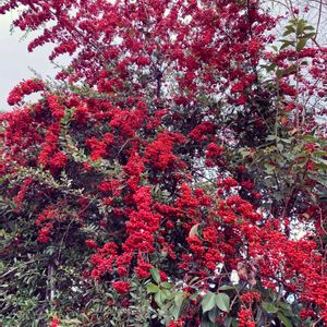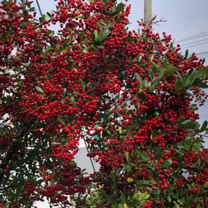 外出の帰り道、立ち寄った公園の外周に植えられていたピラカンサ🌳 赤い実がいっぱだぁ😍