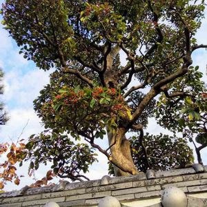 花散歩✿💚🍁 あの武家屋敷風の邸宅の白壁の向こうから赤い実のなったきれいな木 (*˘︶˘*).。.:*♡💚💓 🌳この木なん木?知ってらっしゃる方 お願いします!🏵✿💚🍁♫