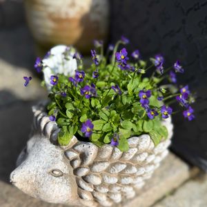 極小輪ビオラ多摩の星空🌱 今年はこの小さいビオラが可愛すぎて…💓 このハリネズミ🦔さんの鉢も可愛いけど顔が真顔で笑えます🤭