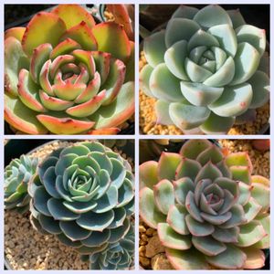 おはようございます 遅ればせながら今年もどうぞよろしくお願い致します🙇 ベランダの柵の影になっていますがいろいろ撮ってみました😊 上右 モーニングデュー最近ポチった子 上左 サブリンだいぶん肉厚になってきましたがなかなか動きがない子 下右 リエールさん2021カレンダーセットに入っていたエゲリア いち早く根付いてしっかりしてきました 下左 七福神です