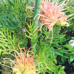 薄いオレンジのグレビレアさん もう咲かないだろうと思ってたのに また咲き始めてくれました 今年は何度も撮ってupさせて 貰いました 🧡🌿(ꕤ ॑꒳ ॑*)ノ🌿🧡