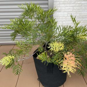 R7.5.6 グレビレアピーチズ&クリーム 植え替えのせいか去年は中々花芽が付かなかったけど、今年は順調💕 コガネムシの幼虫には注意しないと💨