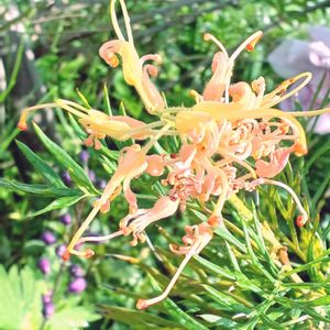 今年はグレビレアが春からずっと咲き続けてくれています。 「ピーチ&クリーム」四季咲きでおすすめです♪