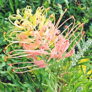 おはようございます☺️PEKO地方曇り空☁️グレビレア ピーチ&クリーム咲き出しましたよ💛🧡🩷