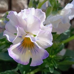 おはようございます🤗 ✨パンジー✨ 品種名は忘れてしまいました。 一ヶ月前は色合いがブルー系でした。 最近になって白ぽっく変化してきてます。 寒さのせいかな🤔
