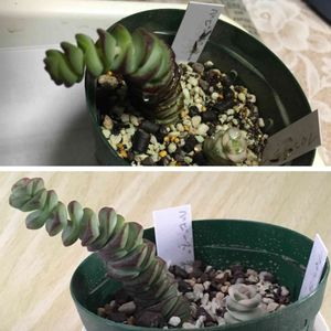 あ〜モタモタしてるうちに日付変わってしまった・・・ ↖️ルビネがきれい ↗️べビーズネックレス元気 ↙️アリエルの花芽の可愛さは反則‼️ ↘️完全野ざらしリラシナ、強い! ローラやデレッセーナの親にあたるので、やっぱり色が似てる 葉っぱのサイズはかなり違うけどねっ