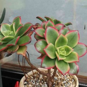 おはようございます🎵 ずっと直射日光に晒してスパルタやってたのですが、アエオニウム等冬物?たちを半日陰生活に置いたら、キレイに整ってまいりました❤️ これは岩子ちゃん鉢の「夕映え」さんです。ピンクの縁取りが 効いてます🎵🤣