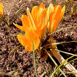 雨が降る前に…畑とお庭のパトロール🚶♂️➡️ クロッカスさん小さいのですが 3人仲良く咲いてます✨💐💐💐✨とっても可愛い😍です❣️