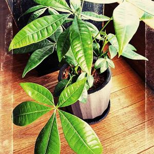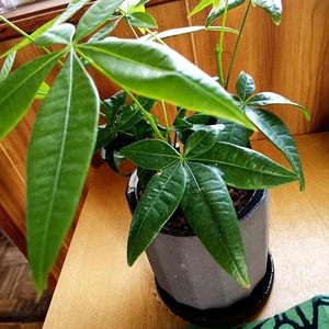 もう1つのパキラ🪴 この子は成長が遅めだけど調子悪い葉もなく順調で新しい葉もそろそろ開きそう🌱 このパキラもダイソー産です。