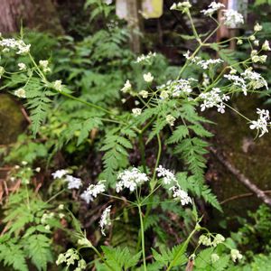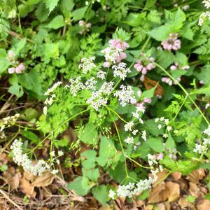 2021/3/13撮影 セリ科のやや大型の野草。花は小さい。 花びらは5枚で、2枚は大型。 山菜として食べられるらしい😄