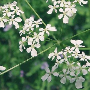 シャク(杓) セリ科 小さな川の側に咲いてました。 外側の花びらが大きいのが特徴的です🤍 山の湿った場所を好む 葉も花も細かくて繊細 和製セルフィーユ山菜として利用される ハーブのセルフィーユ(チャービル)も同じシャク属だった😃