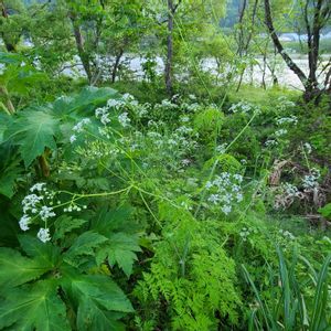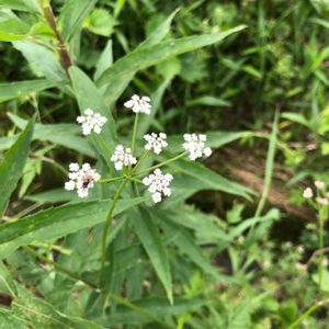 林道沿いに咲いてました。草丈1.5m花はとても小さいです。調べると特徴的な葉のかたち、シャクで間違いなさそうです。「杓」