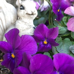 ラビット咲きのビオラ🐇 これでは よくわからないね😥 本当は 寄せ植えにしたかったけど よく広がるとお花屋さんの奥さんに言われたので 2株だけでプランターに入れました💕