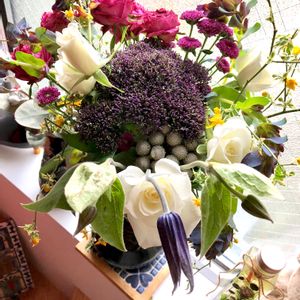昨日のブーケを花瓶に活けました。 こっちのが可愛く見える💦