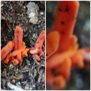 お久しぶりです! 台風やらなんやらで忙しく投稿サボってましたがキノコのコンテストがあると言うことで何枚か連投します😆 一枚目は超猛毒菌で有名なカエンタケ🔥 触るだけでもアウトな奴です。 約10gほどで致死量☠️症例は腹痛・悪寒・頭痛・手足の痺れ・嘔吐・下痢・喉の渇き・糜爛・脱毛・腎・肝・呼吸器・循環器不全・脳障害などetc. 一応味は苦い上に硬いので食べれません🤮