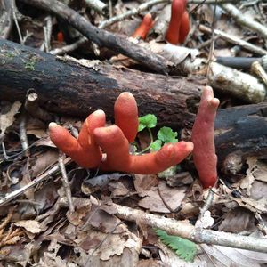 ベニナギナタタケ=食⭕ カエンタケ=毒☠️素手で触るのも❌ どちらだか判別できません💧