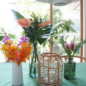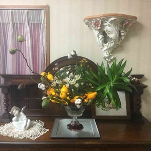 ピンクッションと利久草をリビングに。 利久草は家に置くと邪気を祓うと言われているそう。 束で買ったので玄関にも飾りました。 軽やかな明るい緑の葉っぱに生命力を感じます。