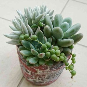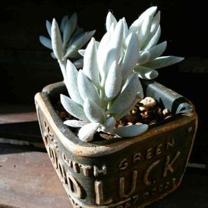 こんにちわぁ( ´ ▽ ` )ノ 昨日の七福神の寄せ植えpicが 700picだって、フォロワさんが教えてくれました🎉 いちごチョコ🍓🍫ちゃん、いつもありがとう♥️ 偶然にも大好きな七福神が記念のpicで 私、神ってる🌟🌟なーんて思っちゃいました(*’ω`*)ゞ どうぞこれからもよろしくお願いします🍀🌈☀️ 701枚目のpic 真っ白な美人多肉、銀月さんを はちさんから頂いたデニムタニク缶に植えたよ 白と紺の組み合わせ うん!やっぱりカッコいいぞ🌟