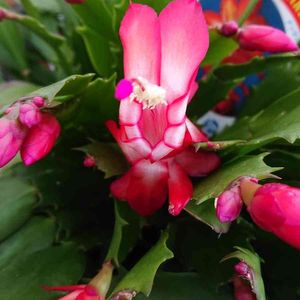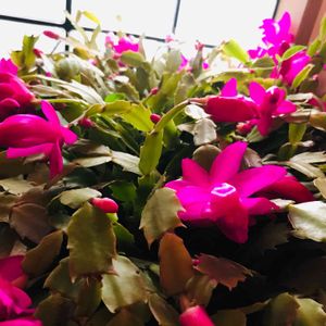 シャコバサボテンの途中報告〜‼️⓷ 蕾も長くなって、あちこち咲き誇って 来ました💕💖💗💓 あともう少しで満開でーす💝