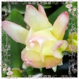 シャコバサボテン… デンマークカクタス 🏵️🤍ムーンライト が…やっと咲いてきました…!!😀!!(>ω<)…ウレシイワ…💛🏵️🤍💚🌿… 確か…もっと白っぽかったはず! 🤍💛ムーンライトですから…🤗💝🏵️🌿💞🎶ねぇ… ウキウキわくわく♪🏷 しあわせ運べるように🏷 今日も元気で🏷 (=^・・^=)ニャン…🌸💮💐