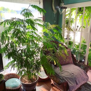 冬越しで室内にいれたエバーフレッシュ。 環境の変化のせいか…数日は日中も葉っぱの開きが悪くて心配したけれど、やっとこの場所に慣れてきたようで、葉っぱが開き始めました。ひと安心です。
