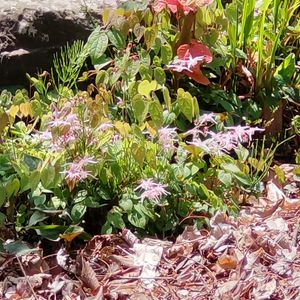 1,2枚目 チューリップ🌷白と紫のラベルを見て購入して植えたもの 一斉に咲いてくれました😉💓 やっぱりこの色合い好き😄 3枚目スノーフレーク 4枚目 カイドウが咲き始めました 後ろにトキワマンサクの赤花が咲いてるから賑やかに見えるね😆 5枚目イベリス なにもしてないけど毎年ちゃんと咲いてくれる😄