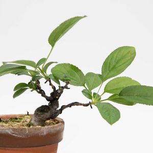 植物にハマるきっかけになった頂きもののミヤマカイドウ。 いかにも盆栽なかわいい子です。 葉や実はしっかりつけるのに変に伸びたり大きな葉がでないのはさすが完成樹。 他の子はあれこれいじってますが、この子はこの姿をずっと維持できるように育てたい。 2号:長角中帯盆栽鉢